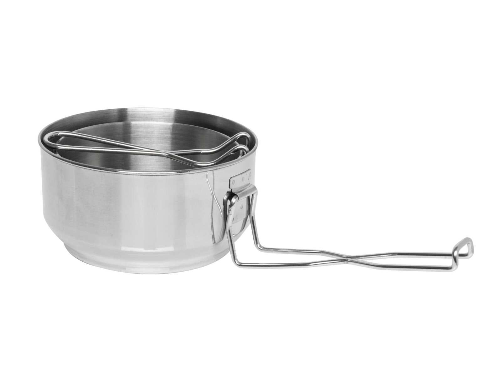 Trzyczęściowa menażka wykonana z trwałej stali nierdzewnej to niezawodne rozwiązanie na biwaki, wyprawy survivalowe i codzienne gotowanie w terenie. Kompaktowy zestaw składa się z: