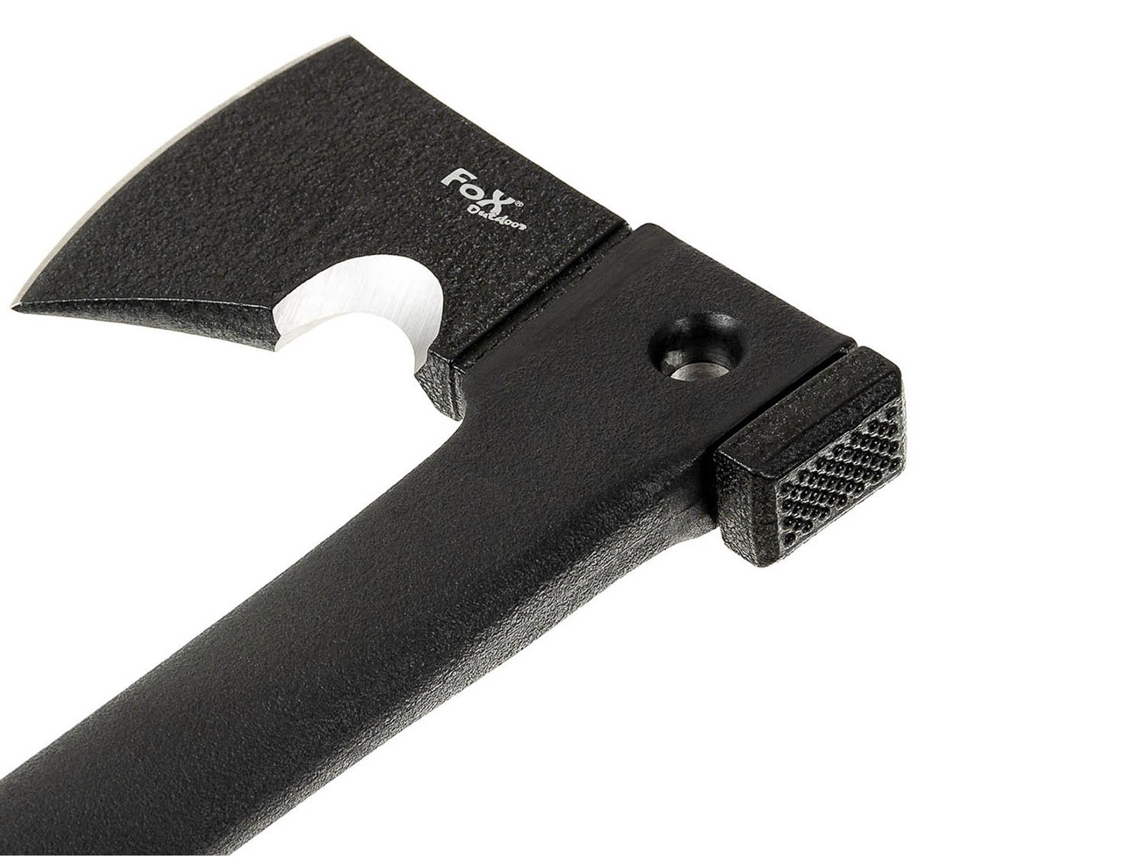 Toporek survivalowy MFH Fox Outdoor to wielofunkcyjne narzędzie łączące w sobie siekierezę, młotek i piłę, idealne do wszelkich aktywności outdoorowych – od bushcraftu i survivalu, po wyprawy w teren, biwaki czy działania awaryjne. Głowica została wykonana z czernionej stali nierdzewnej 3Cr13, znanej ze swojej odporności na uderzenia i korozję.