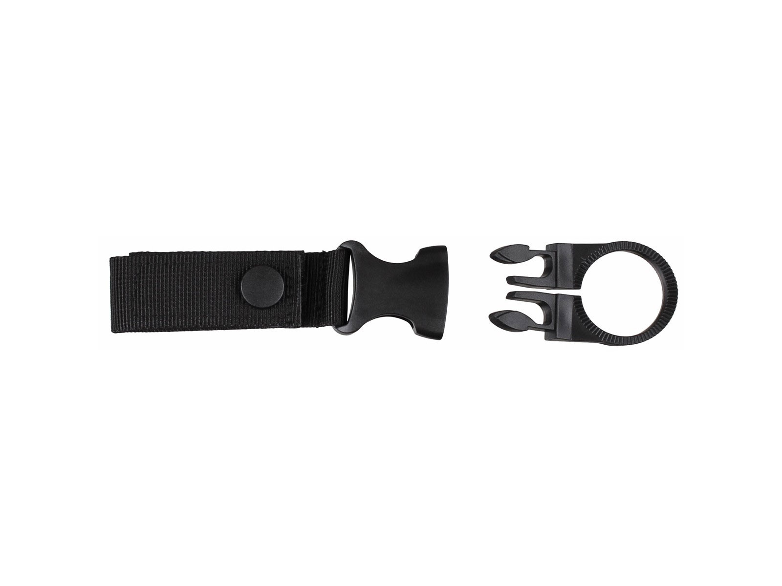 Taśma wykonana z poliestru zapewnia lekkość i wytrzymałość, natomiast część uchwytowa z polipropylenu pozwala pewnie zamocować większość standardowych butelek z wodą lub napojami. Kompatybilność z systemem MOLLE umożliwia szybkie i stabilne przymocowanie uchwytu do plecaka, kamizelki taktycznej, pasa biodrowego lub innego elementu oporządzenia.