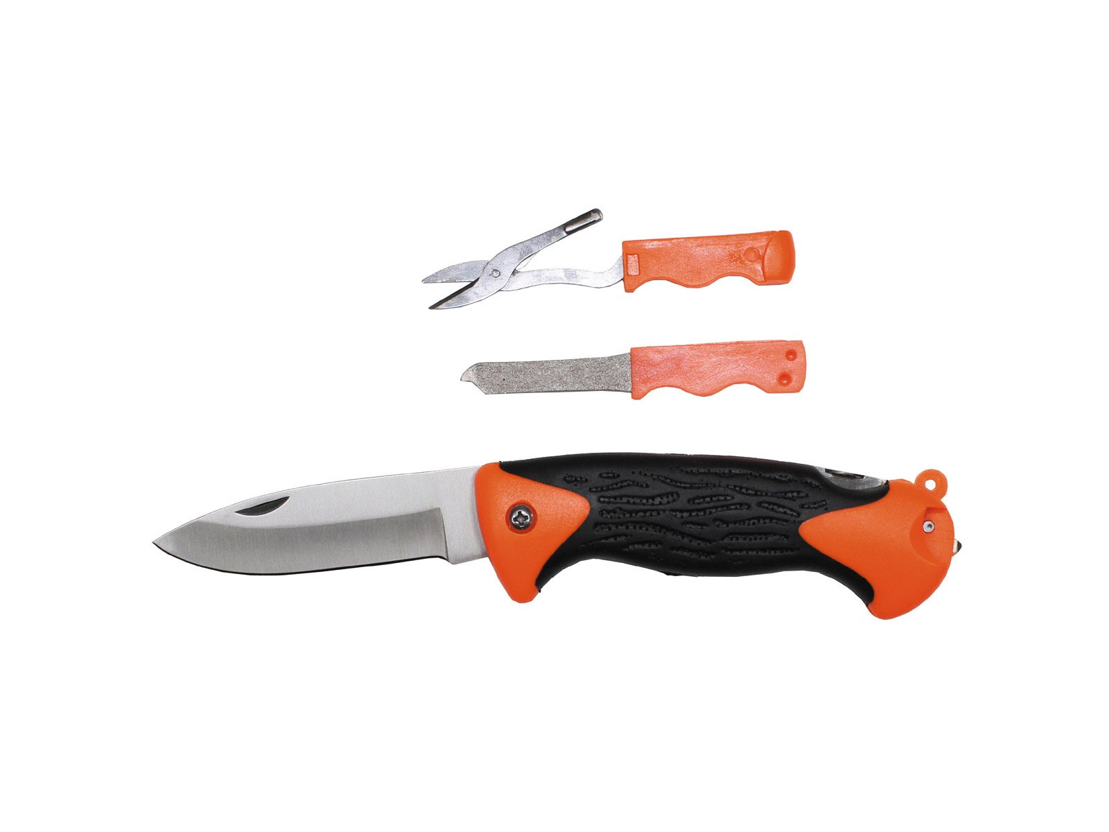 - 6 wymiennych ostrzy: nóż, piła, ostrze do cięcia, otwieracz do butelek i puszek, zeskrobywacz do ryb,