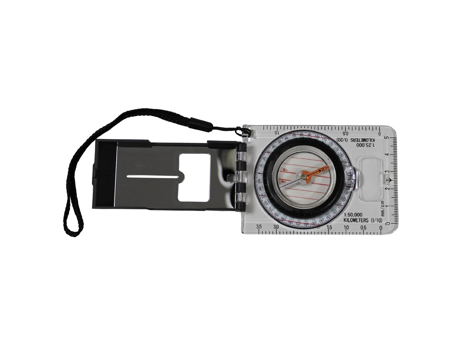 Wyposażony w wypełnioną cieczą tarczę magnetyczną, kompas zapewnia stabilny odczyt nawet w trakcie marszu. Lusterko sygnalizacyjne i szkło powiększające umożliwiają dokładne wyznaczanie kierunku i azymutu, a przeźroczysta obudowa nie zasłania mapy. Kompas wyposażono również w miarkę 5 cm, skalę mapową 1:25 000 i 1:50 000 oraz obracany pierścień namiarowy.