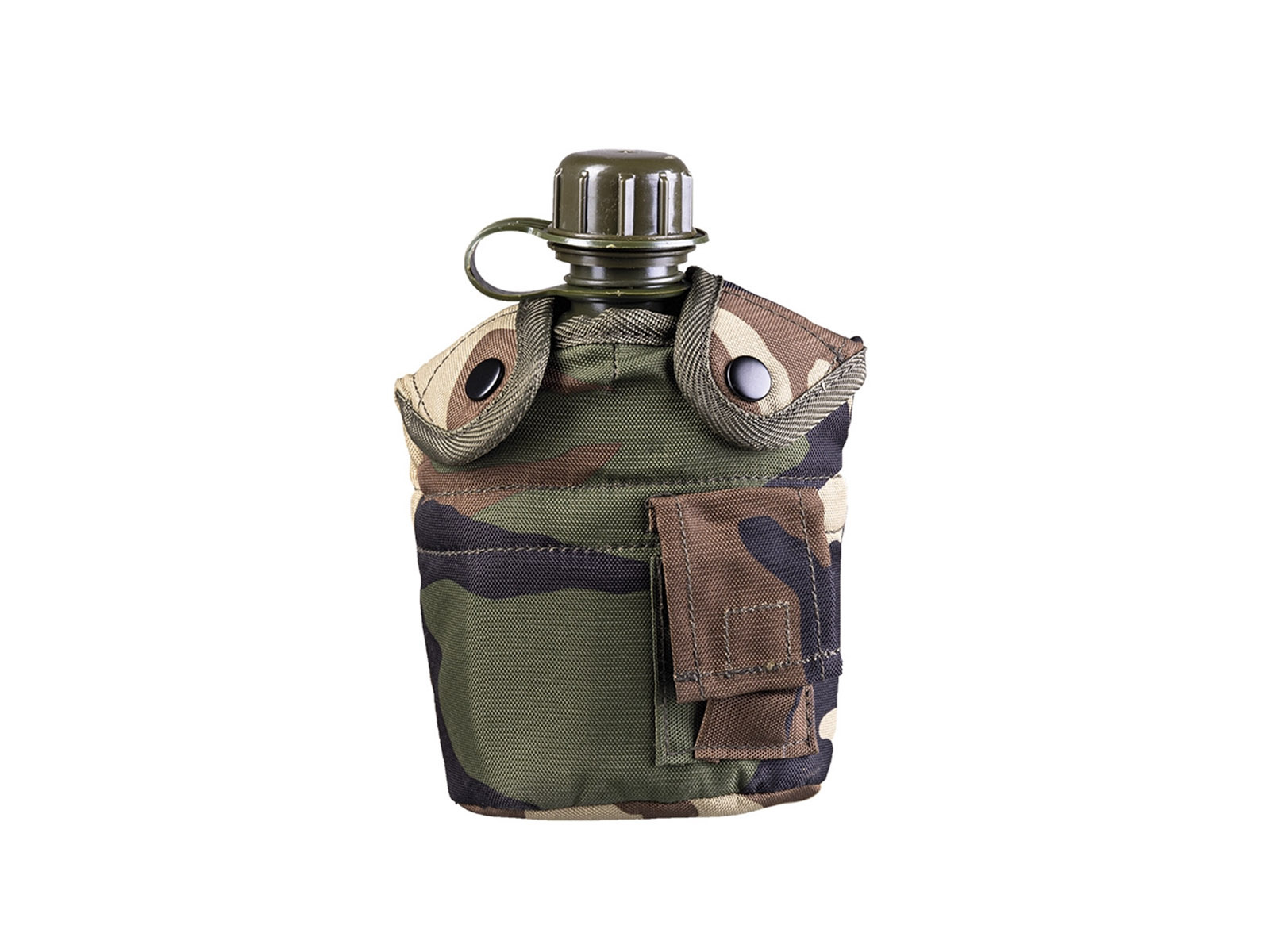 Całość uzupełnia pokrowiec z poliestru w kamuflażu woodland moro zielonym, który dzięki systemowi ALICE można przymocować do pasa, plecaka lub kamizelki taktycznej. Pokrowiec posiada również małą kieszonkę np. na tabletki do uzdatniania wody.