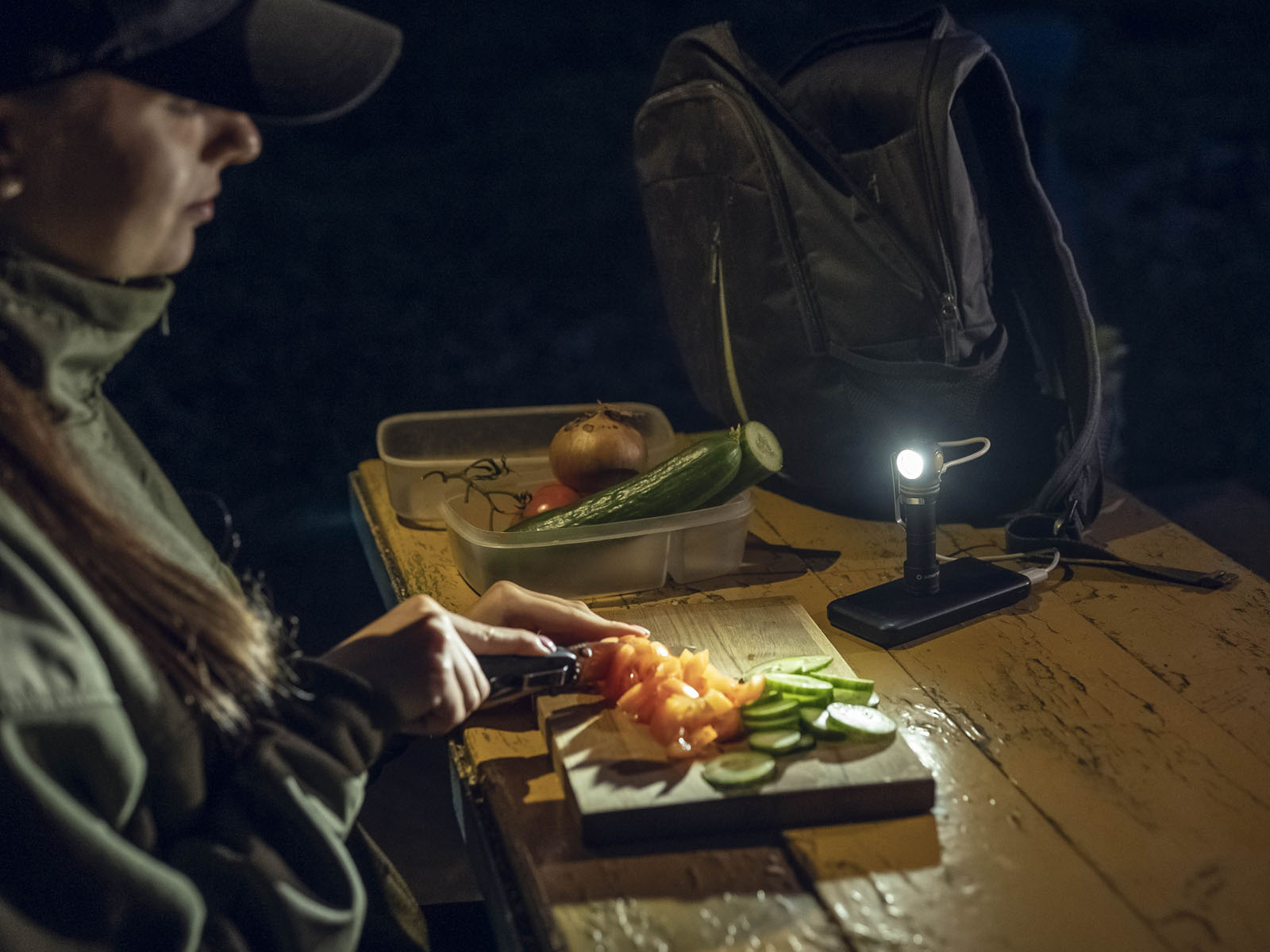 W trybie minimalnym latarka działa aż 6,5 miesiąca, a w trybie lampy może pracować bez ograniczeń – bez akumulatora, zasilana bezpośrednio z dowolnego portu USB. Do ładowania wystarczy zwykły kabel USB-C, bez potrzeby noszenia specjalnej ładowarki.