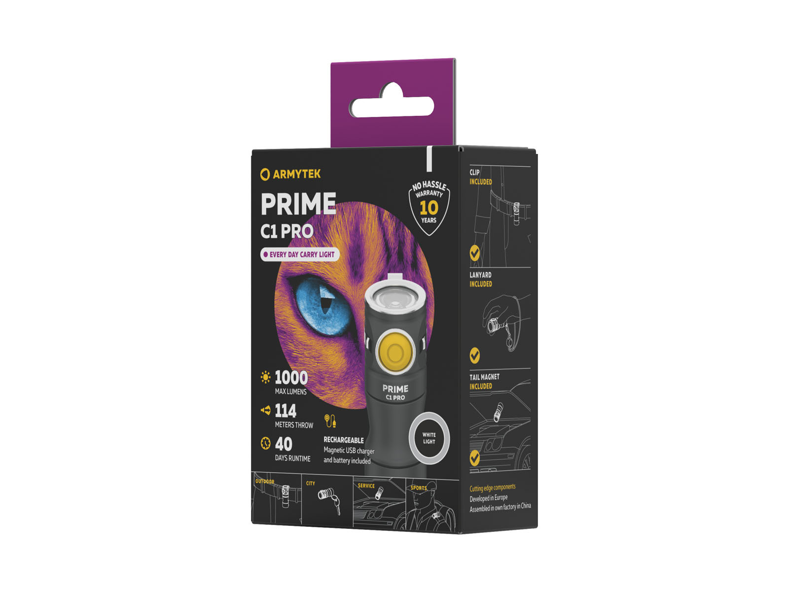 Prime C1 Pro to kompaktowa, ale potężna latarka wykonana z aluminium klasy lotniczej. Stanowi połączenie wysokiej wydajności elektroniki i ergonomicznej konstrukcji – idealna do codziennych zastosowań, noszenia w kieszeni, torebce lub jako brelok do kluczy.