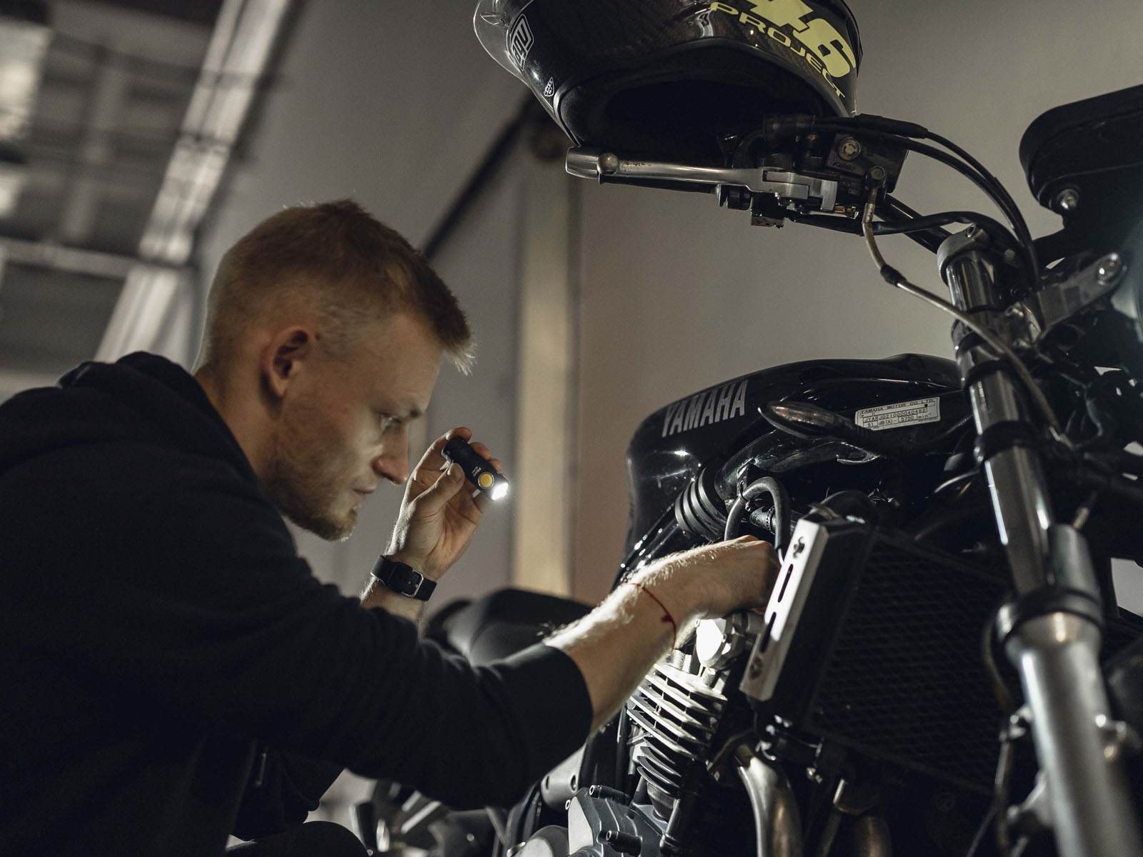 Dzięki kompatybilności z uchwytem rowerowym może pełnić funkcję kompaktowego reflektora. Wyraźny centralny punkt światła i szeroka wiązka zapewniają zasięg do 114 metrów.