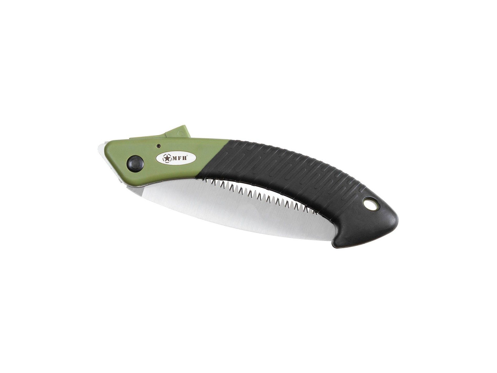 Dzięki solidnej rękojeści pokrytej gumową powłoką antypoślizgową narzędzie pewnie leży w dłoni, nawet w mokrych lub zimnych warunkach. Piła wyposażona jest dodatkowo w blokadę ostrza – zabezpiecza je zarówno w pozycji otwartej, jak i zamkniętej, znacząco podnosząc bezpieczeństwo użytkowania.