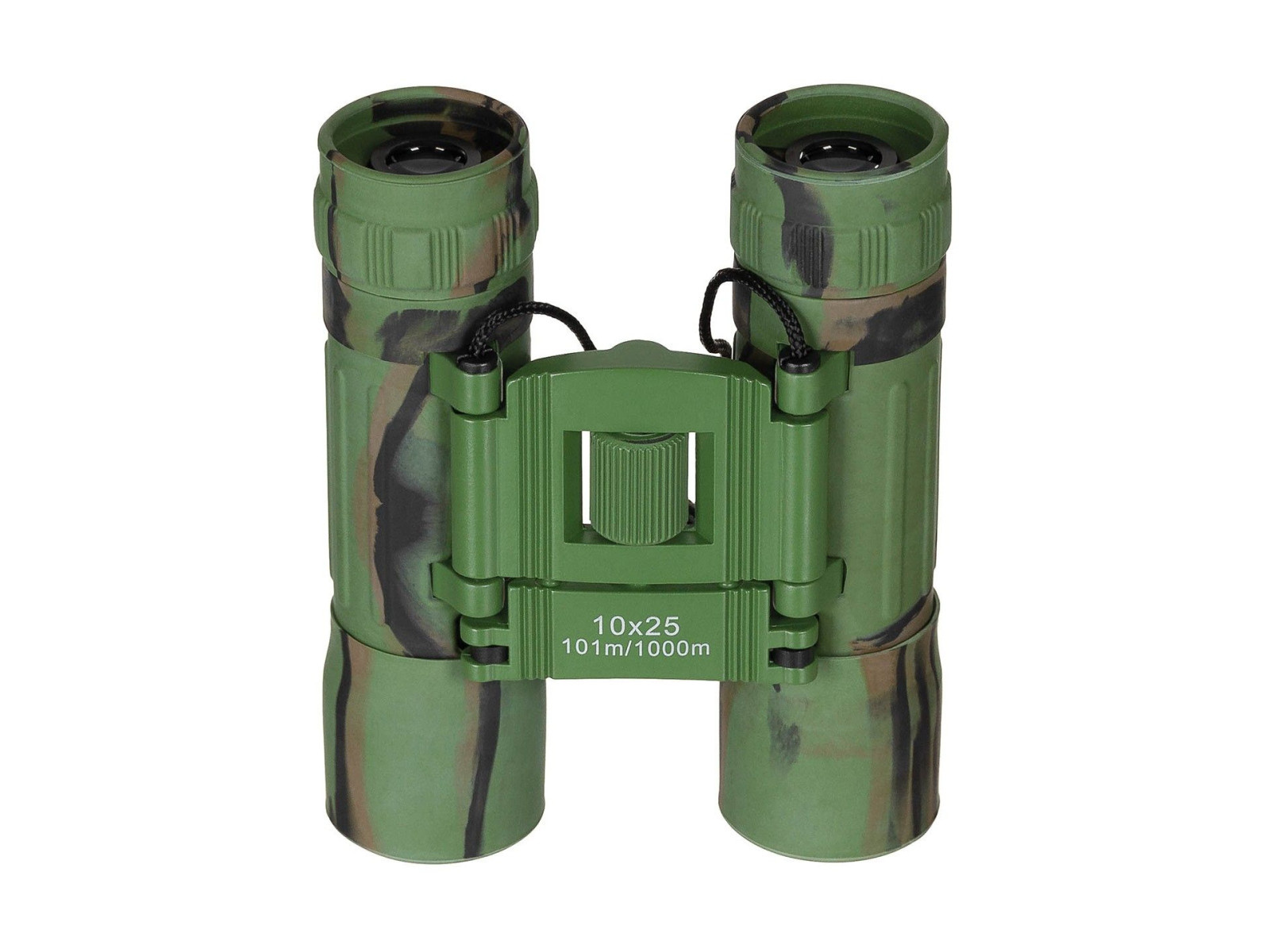 Składana lornetka 10×25 w kamuflażu woodland to kompaktowy i funkcjonalny przyrząd optyczny, idealny do obserwacji w terenie. Dziesięciokrotne powiększenie w połączeniu z obiektywem o średnicy 25 mm pozwala na wyraźne obserwowanie obiektów na dużą odległość, przy zachowaniu niewielkich wymiarów i mobilności.