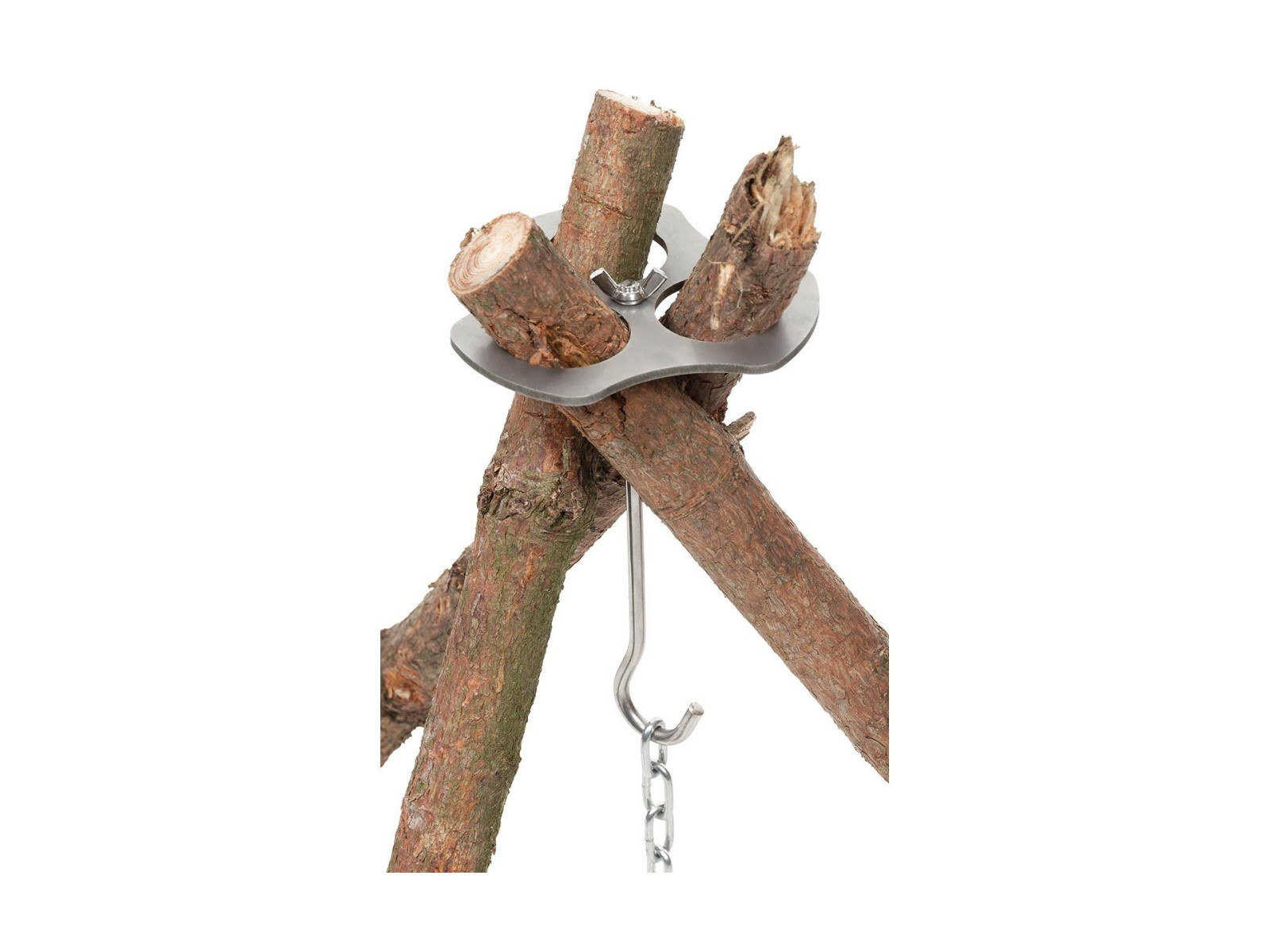 Uchwyt do trójnogu z łańcuchem to solidne i funkcjonalne akcesorium do gotowania nad otwartym ogniem. Wykonany z wytrzymałej stali nierdzewnej umożliwia szybkie i stabilne zbudowanie trójnogu z tyczek lub gałęzi o maksymalnej średnicy 3,5 cm.